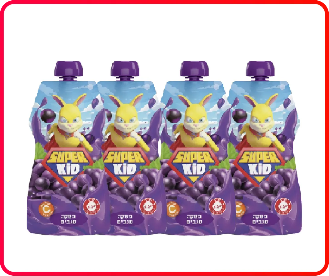 סופר קיד מגיע במגוון טעמים פירותיים שילדים פשוט